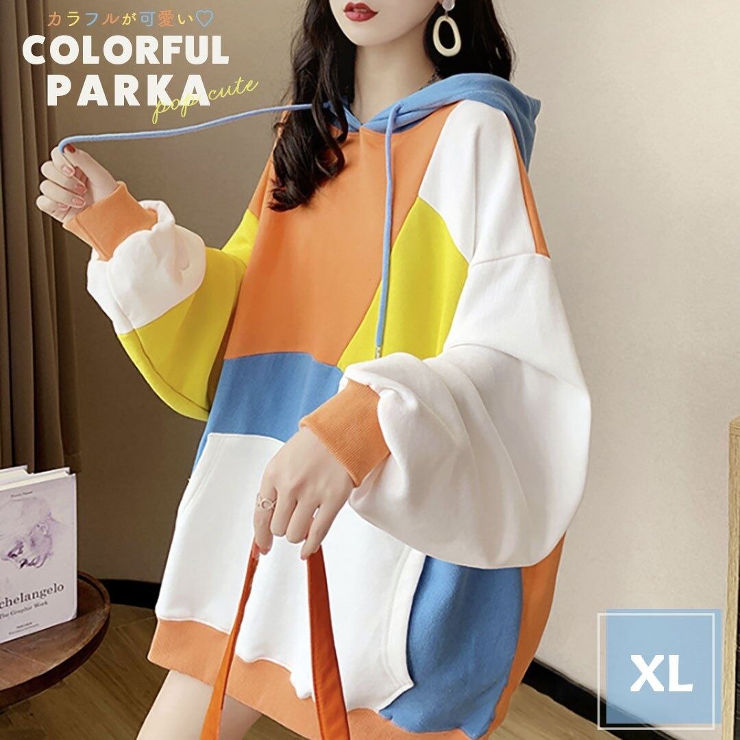 パーカー カラフル XL トップス プルオーバー 韓国ファッション