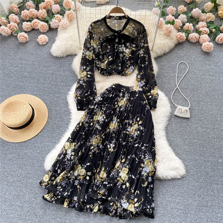 トップス シフォン スカート 2点セット 2022年春新作 ファッション 蝶結び