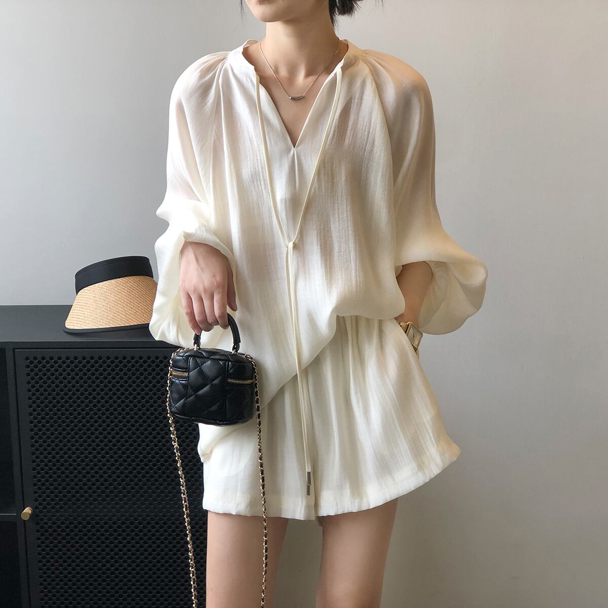 ファッション 夏新作 エレガンス 無地 二点セット 薄い軽い レディース