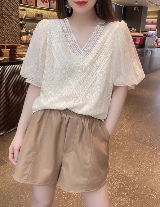 レディース 新作 ブラウス トップス 半袖 アパレル バブルスリーブ Vネック